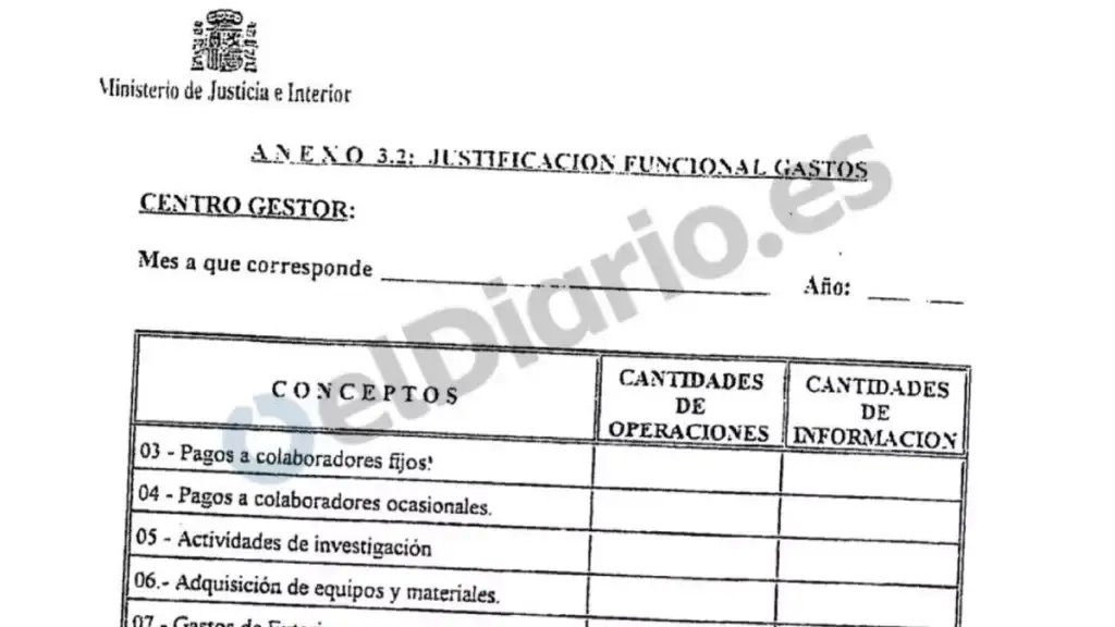 Fuentes conocedoras de la operativa con los gastos clasificados aseguran que en las partidas no siempre se incluye el nombre de la operación o el detalle del reparto del dinero en distintas funciones que se deben escribir en las casillas de los anexos de la citada instrucción de Belloch, unos criterios ya bastante laxos de por sí.