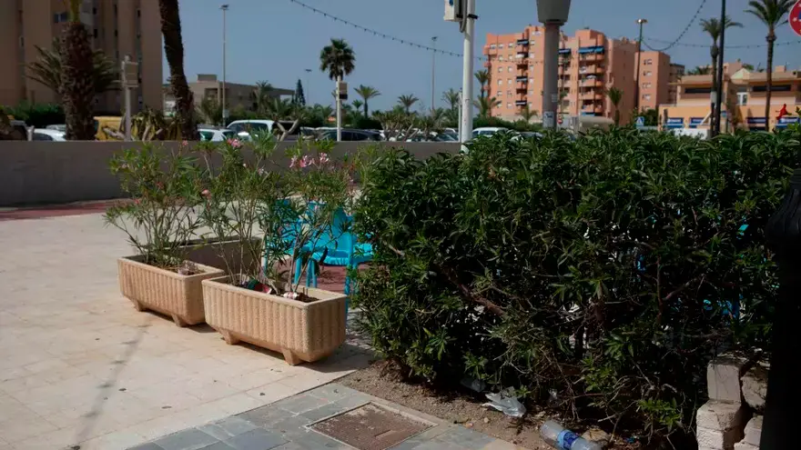 Un suelo en el que te vas pegando cuando andas, basura en los parterres, peleas entre los gorrillas y vendedores ambulantes en la vía pública. Los comerciantes de la Plaza Bohemia denuncian la «dejadez» de una de las zonas más turísticas de La Manga en plena temporada alta estival.